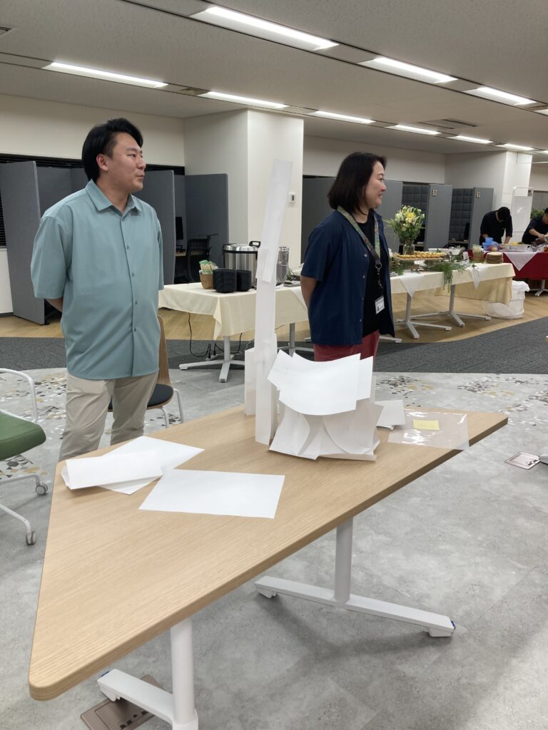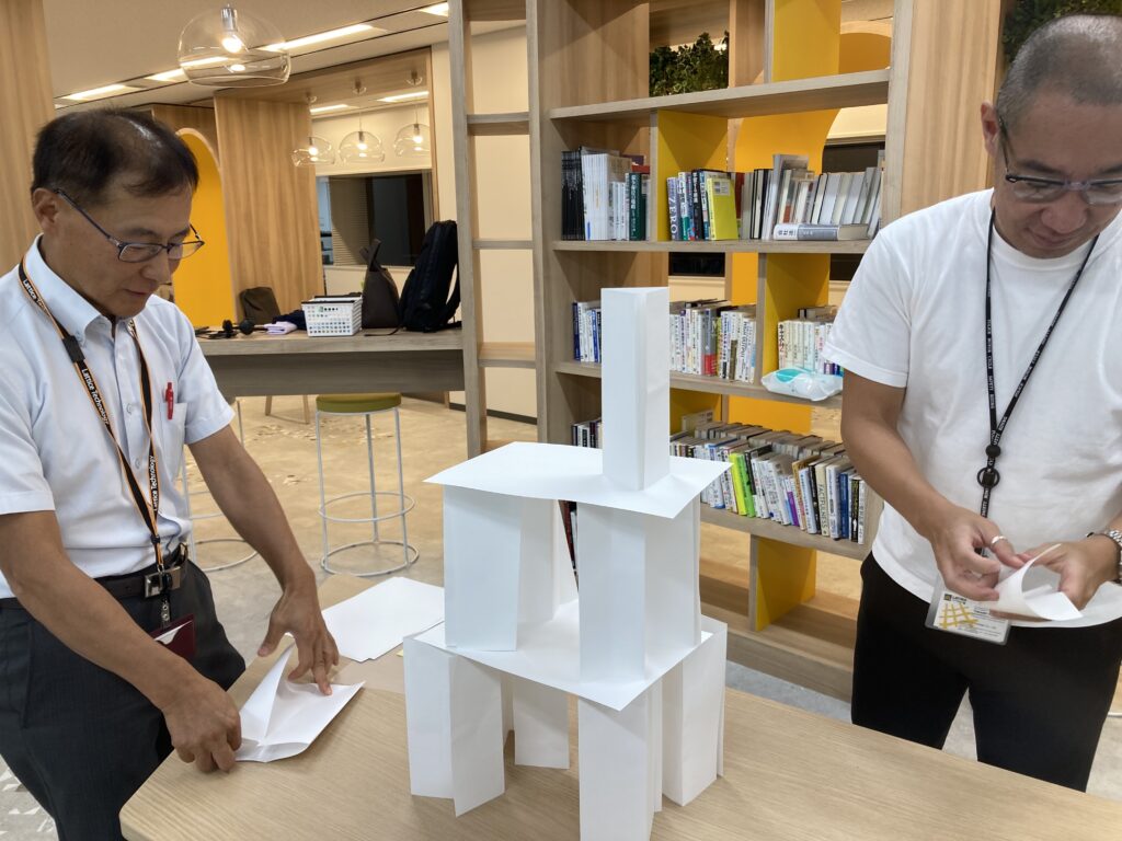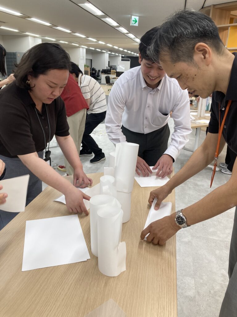 部署・役職ミックスしてチームを作り、対抗戦でA4用紙を使って「ペーパータワー」を作るという内容です!